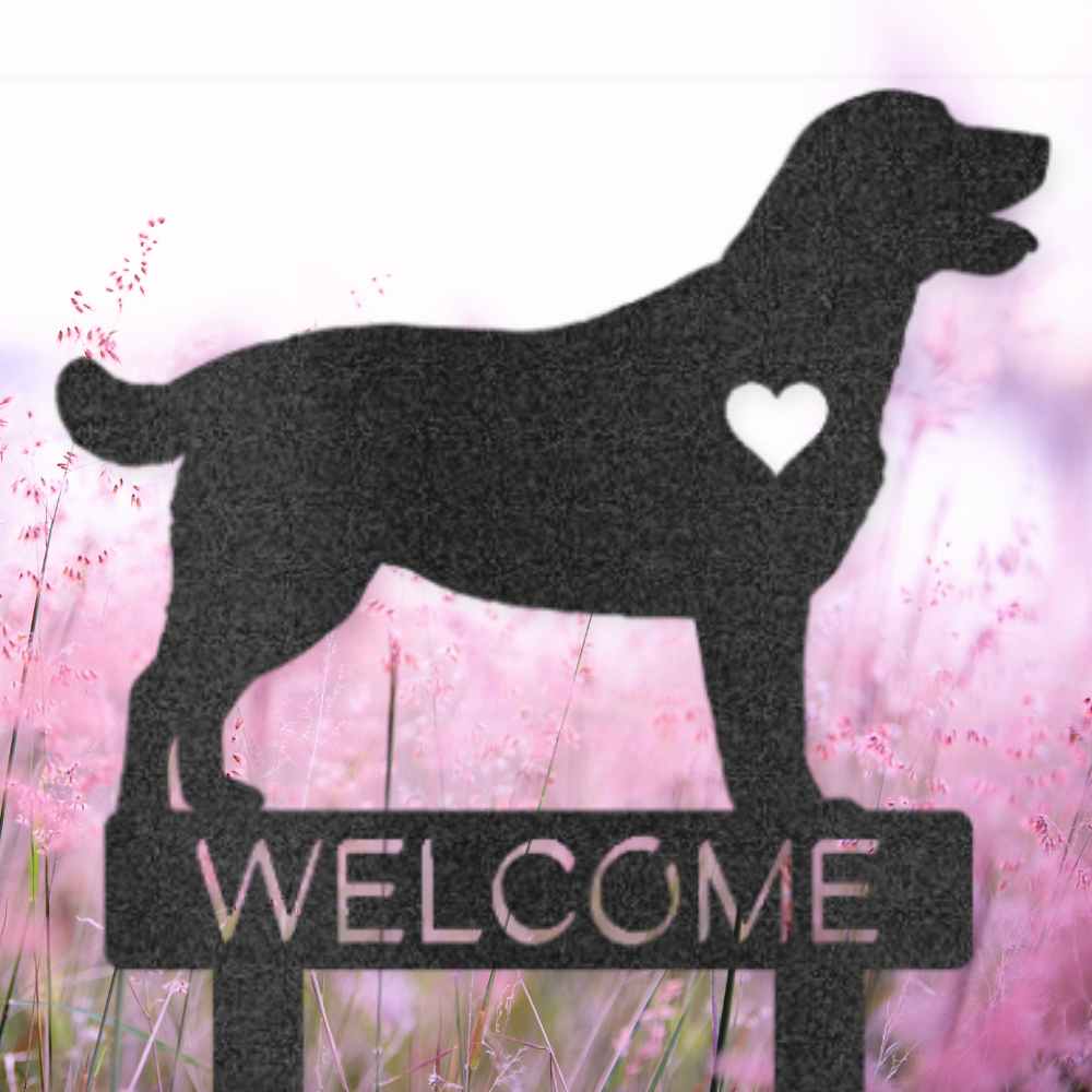 Expertly crafted from 16-gauge steel, this piece features a Labrador Retriever silhouette and the word "Welcome." The powder-coated finish provides durability against the elements, ensuring long-lasting appeal. Available in five colors to match your outdoor space.
